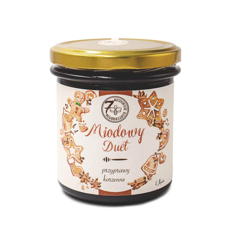 Zanurz się w niezwykłym smaku naturalnego miodu połączonego z aromatycznymi przyprawami korzennymi! Cynamon, imbir, goździki i gałka muszkatołowa tworzą kompozycję, która otula ciepłem i dodaje energii. To idealny wybór na chłodne dni – pełen smaku, aromatu i prozdrowotnych właściwości!